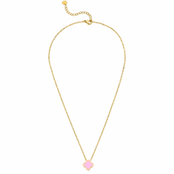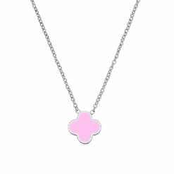 Unsere Pink Clover Halskette ist einseitig mit einem Kleeblättchen in zartem eisblau bestückt. Diese schöne Kleeblättchen Kette für den Alltag, sorgt für ein elegantes Auftreten. Die Oberfläche glänzt dank der 18K Vergoldung bzw. der Hochglanz-Veredelung.