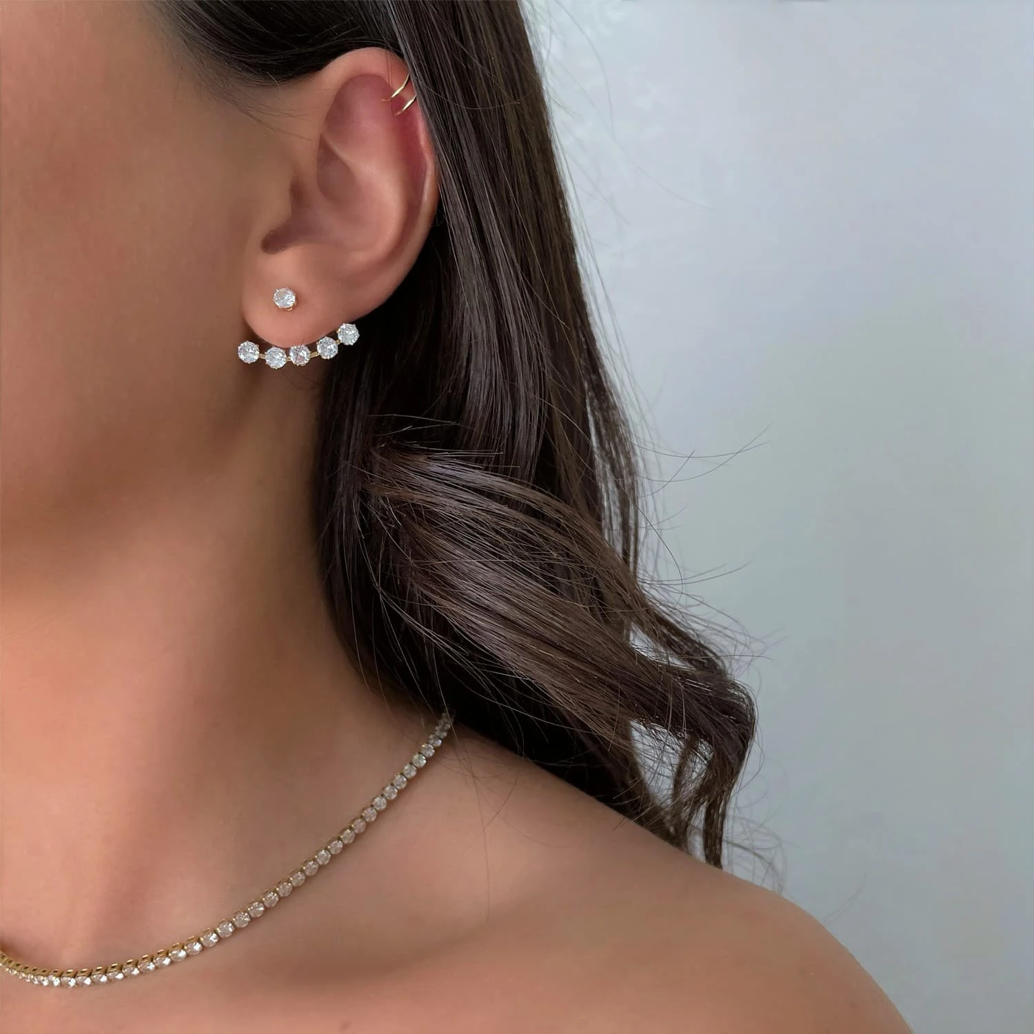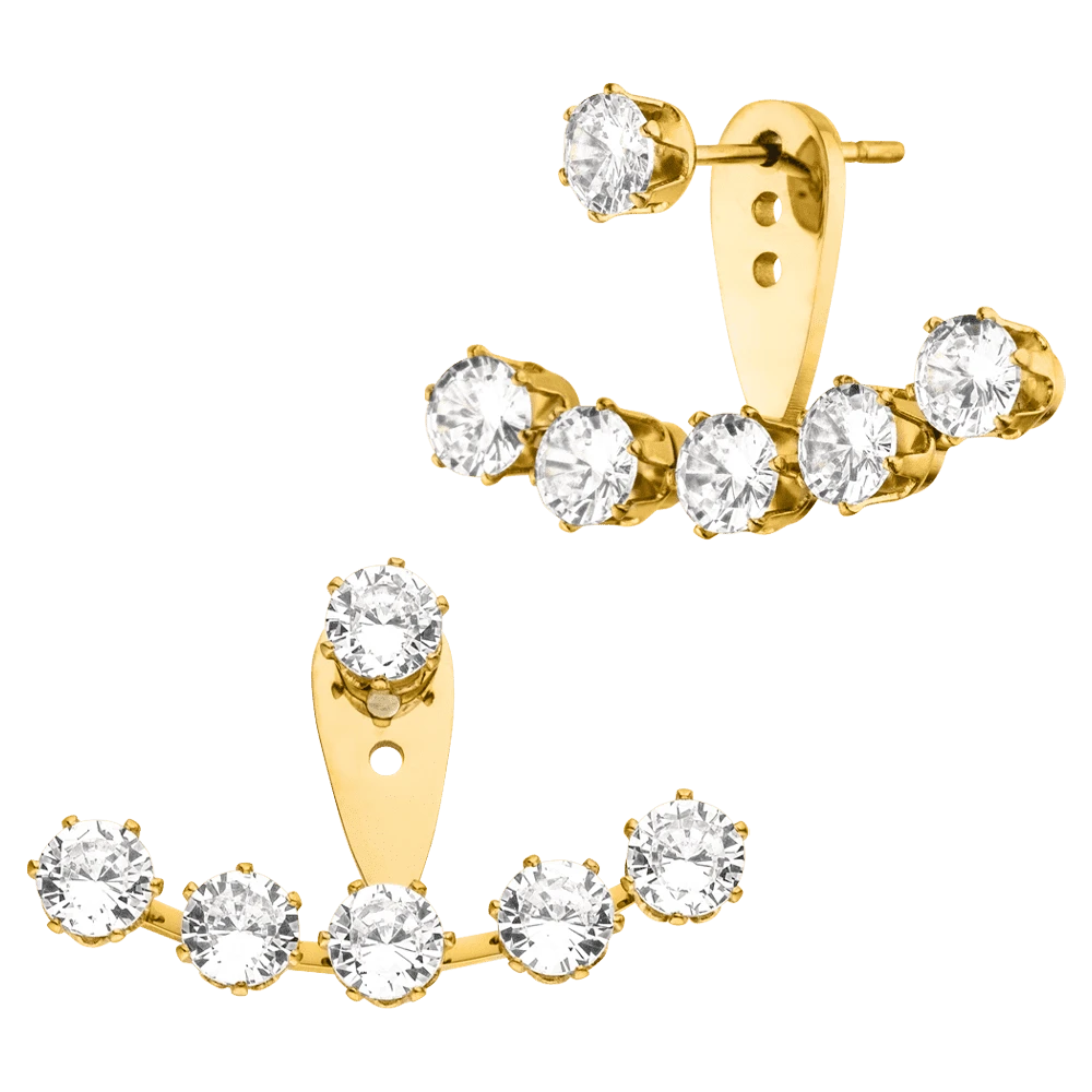 Diese stylisch-modernen Rania Ear-Jacket Ohrstecker lassen sich in zwei Varianten tragen: Entweder können die Ohrstecker alleine getragen werden oder zusammen mit den restlichen Komponenten als sogenanntes Front-back Ear-Jacket.