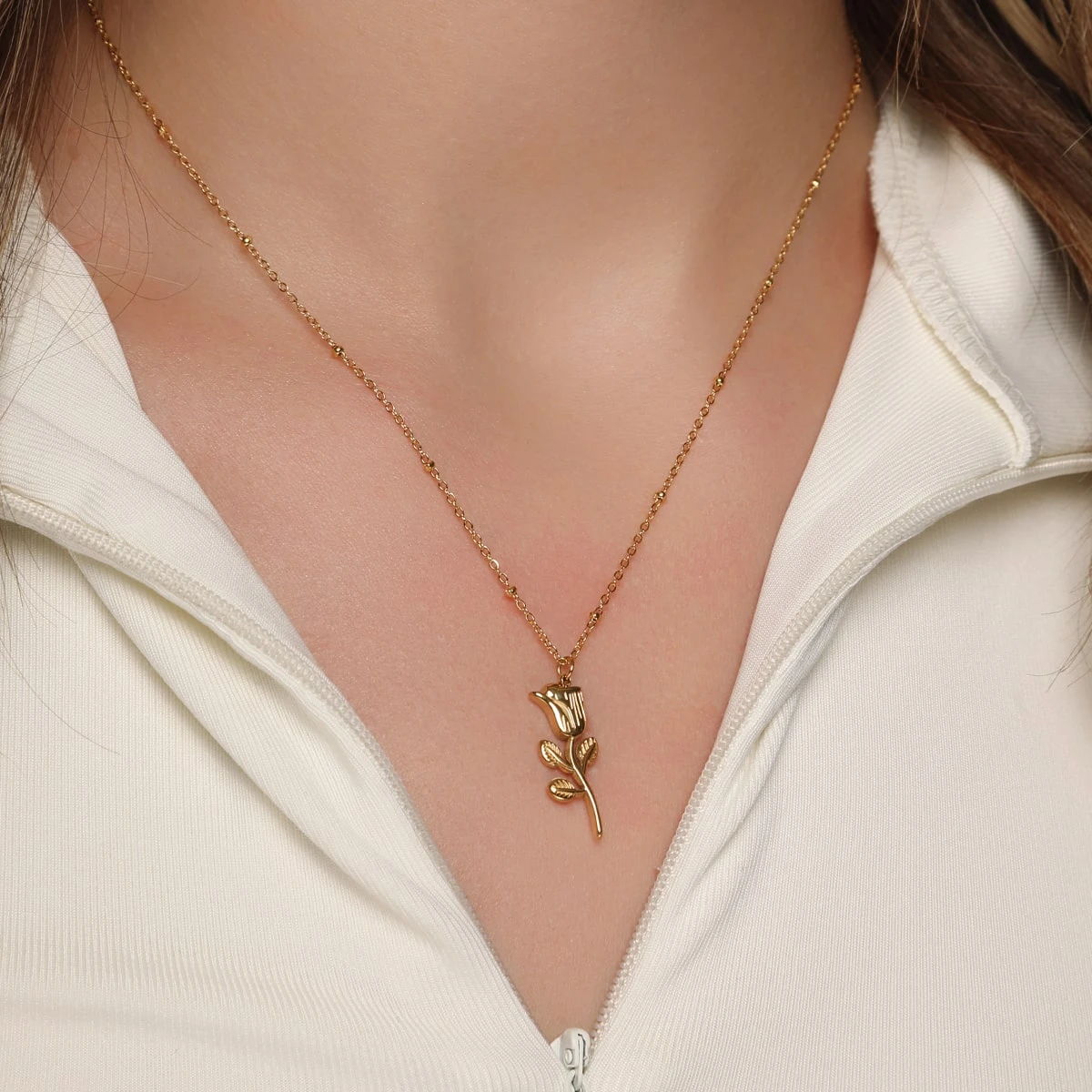 Entdecke die Eleganz unserer Halskette mit Rosenanhänger – ein zeitloses Schmuckstück, das jedes Outfit veredelt. Die feinen Details des Anhängers verleihen diesem Accessoire eine besondere Note und machen es zum perfekten Begleiter für jeden Anlass.