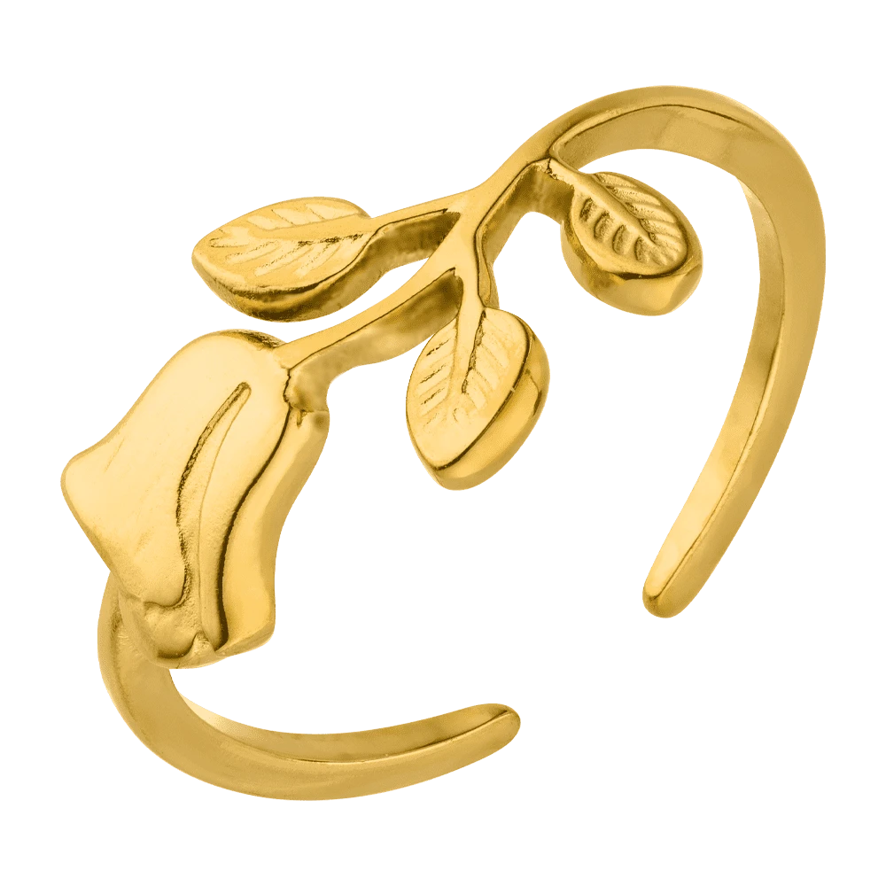 Entdecke unseren wasserfesten, verstellbaren Ring mit einer filigranen Rose – ein zartes Schmuckstück, das Stil und Eleganz vereint. Dank der anpassbaren Größe sitzt der Ring immer perfekt und passt sich Deinem Alltag an. Seine wasserfeste Beschichtung sorgt dafür, dass Du lange Freude an Deinem neuen Lieblingsstück hast.