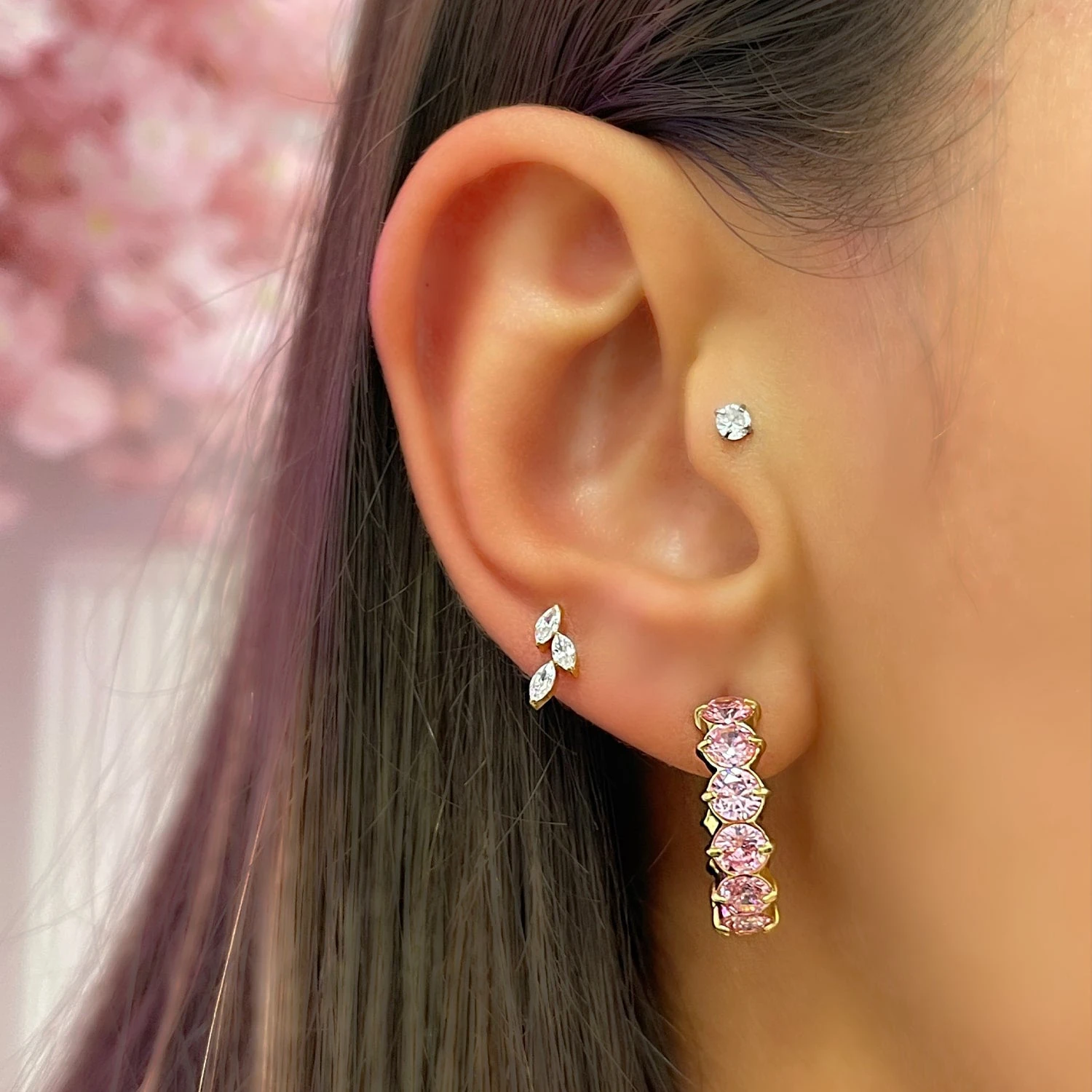 Hochwertige wasserfeste Kreolen besetzt mit funkelnden rosa Zirkonia-Steinen.Â