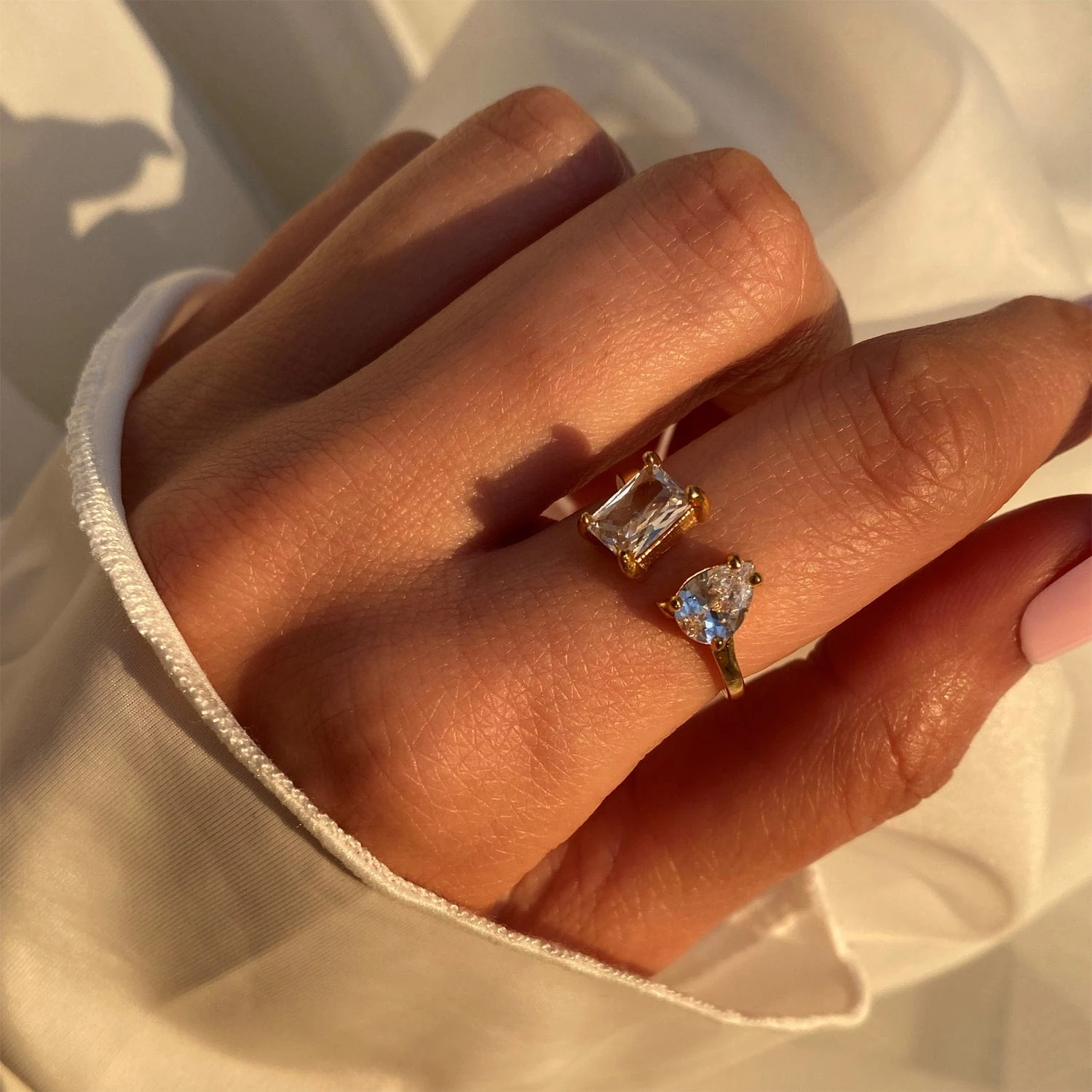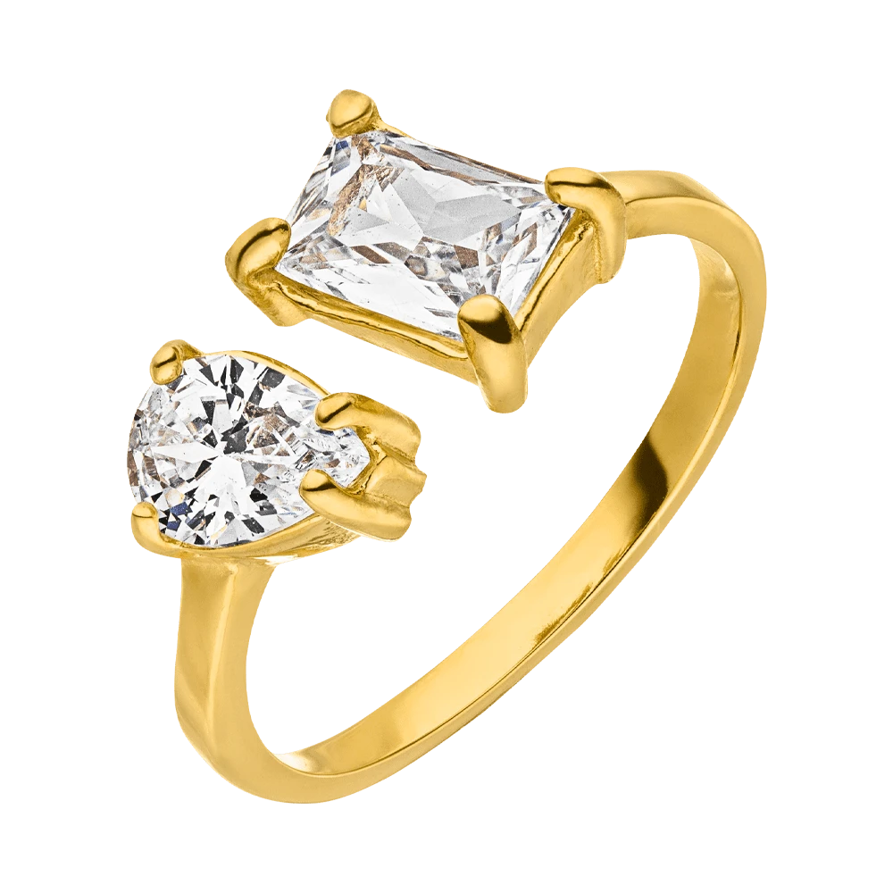 Diese raffinierte Kreation aus hochwertigem Chirurgenstahl ist mit zwei funkelnden Zirkonia-Steinen besetzt. Durch die offenen Fassungen rundum, fangen die Steine das Sonnenlicht besonders gut ein und bringen Deine Hand zum Strahlen. Der Anblick der funkelnden Zirkonia-Steine bringt Dich und alle um Dich herum zum Entzücken.