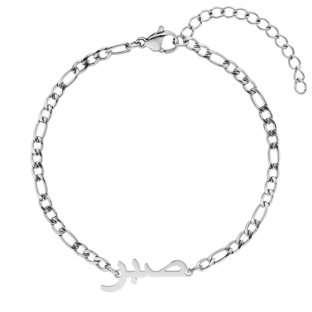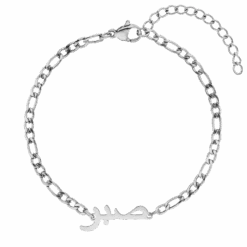 Stylisches Sabr Armband aus nickelfreien Edelstahl. Das arabische Wort „Sabr“ bedeutet Geduld. Die kunstvolle Sprache des Arabischen lässt sich als modische Aufwertung für jedes Outfit einsetzen.