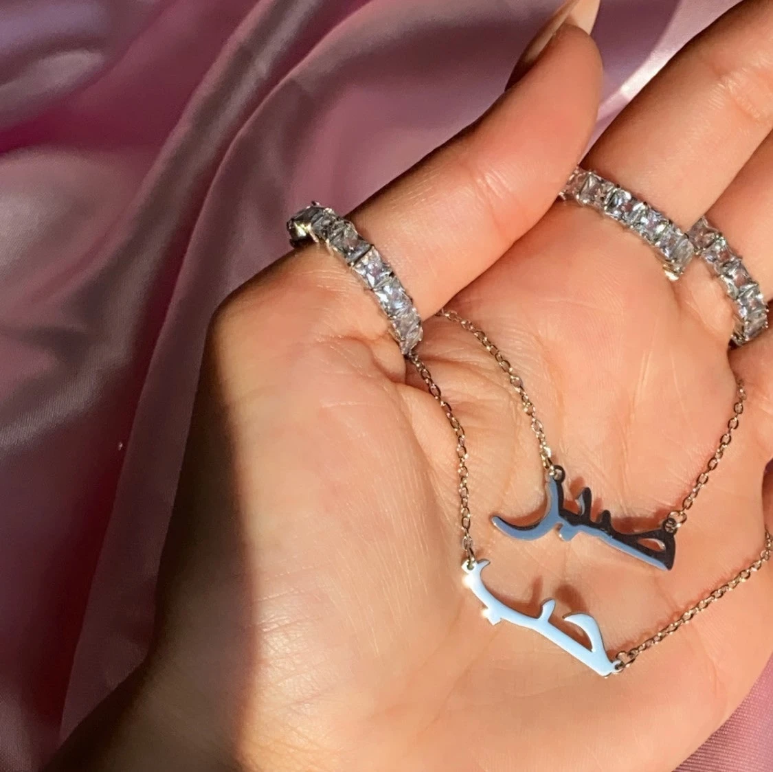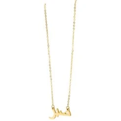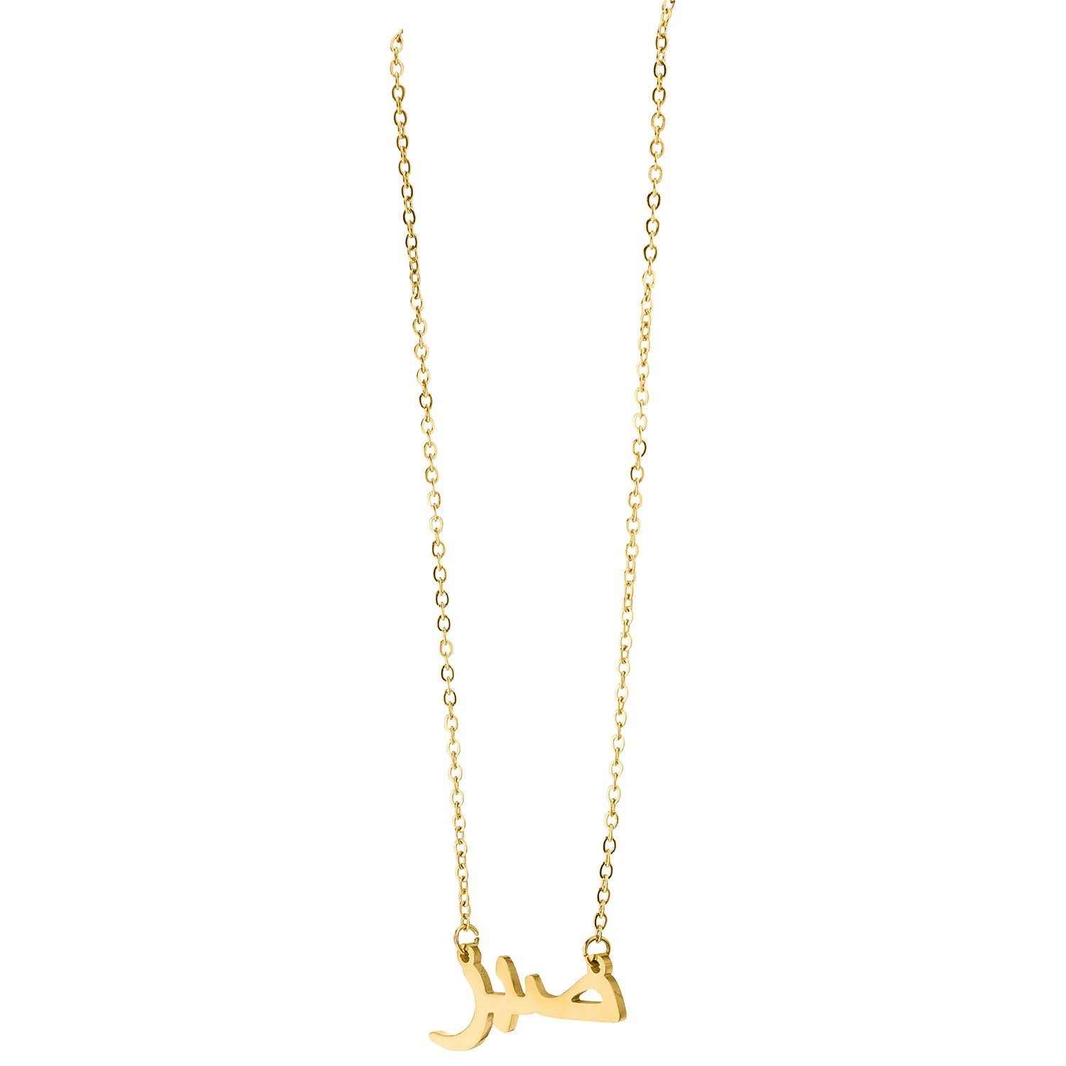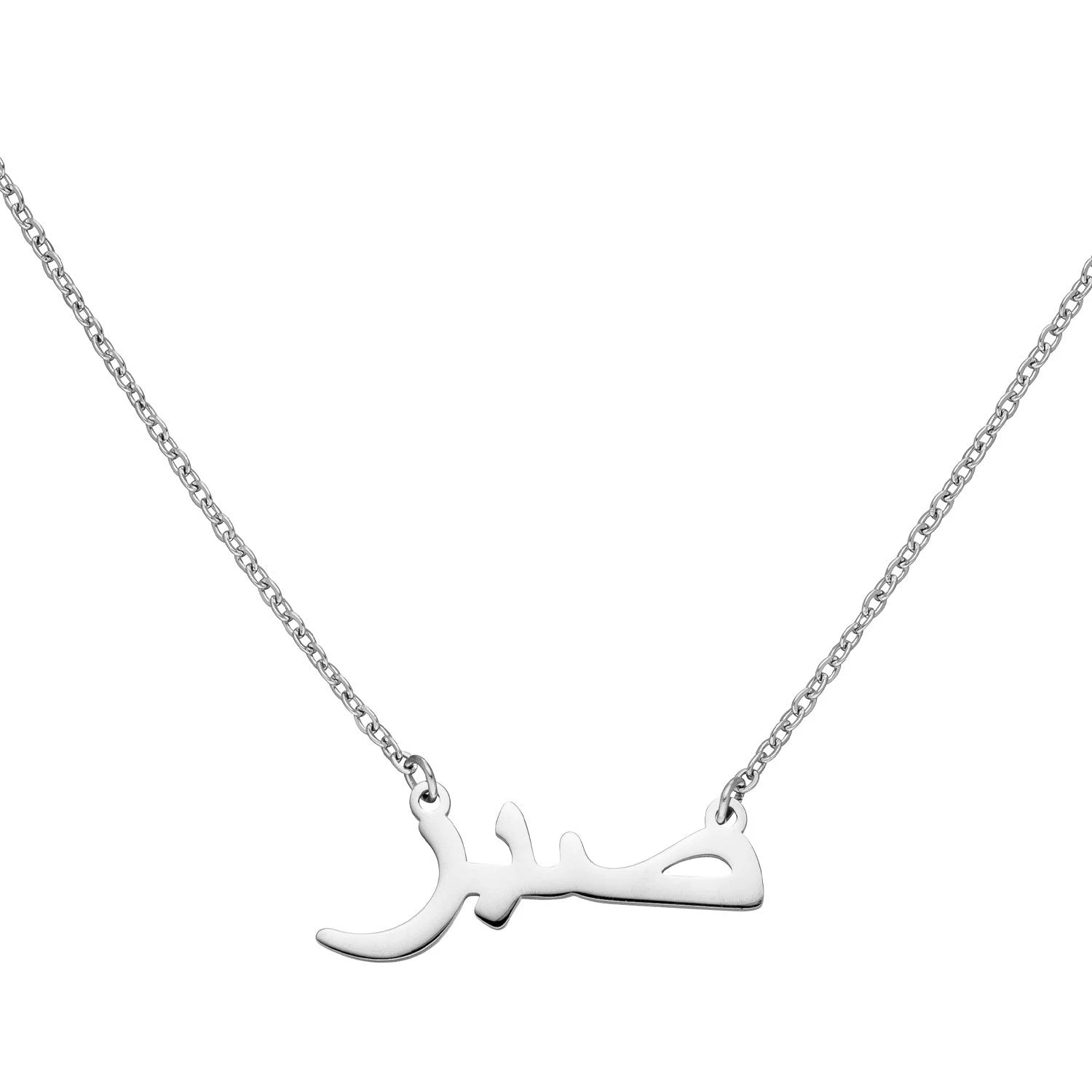 Stylische Sabr Halskette: Das arabische Wort „Sabr“ bedeutet Geduld. Die kunstvolle Sprache des Arabischen lässt sich als modische Aufwertung für jedes Outfit einsetzen.Â