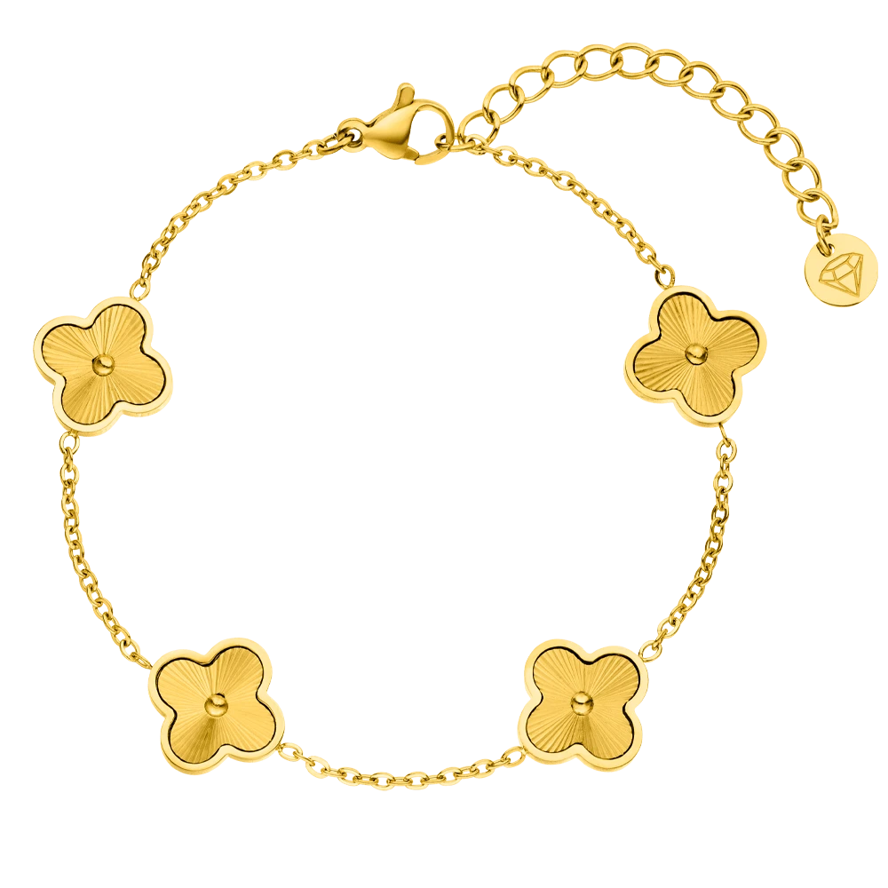 Die anmutigen glänzenden Kleeblatt Details verleihen Deiner Schönheit einen unvergleichlichen Glanz. Durch die besondere Vergoldung und dem beständigen Chirurgenstahl, ist das Armband wasser- und duschfest.Â