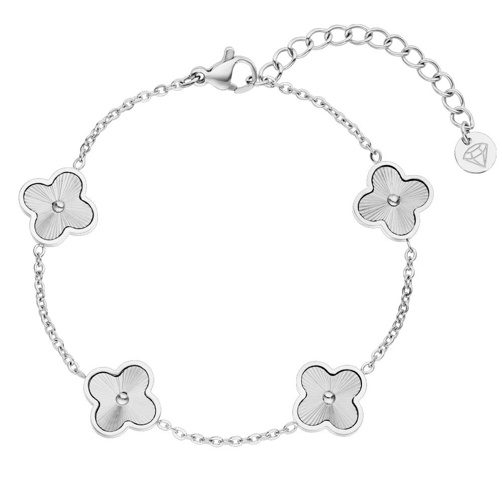 Das Shine Clover Armband ist das perfekte Stück, um Dein Outfit zu verschönern und einen Hauch von Glamour in Deinen Look zu bringen. Alle vier Kleeblätter verleihen Dir mit ihrem glanzvollem Design ein ambitioniertes Auftreten.