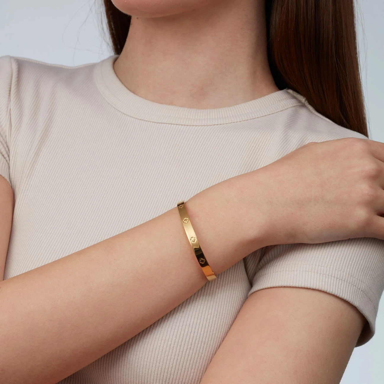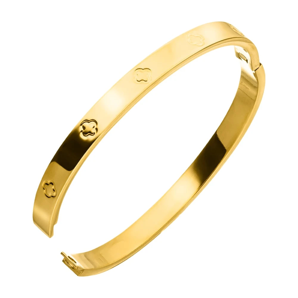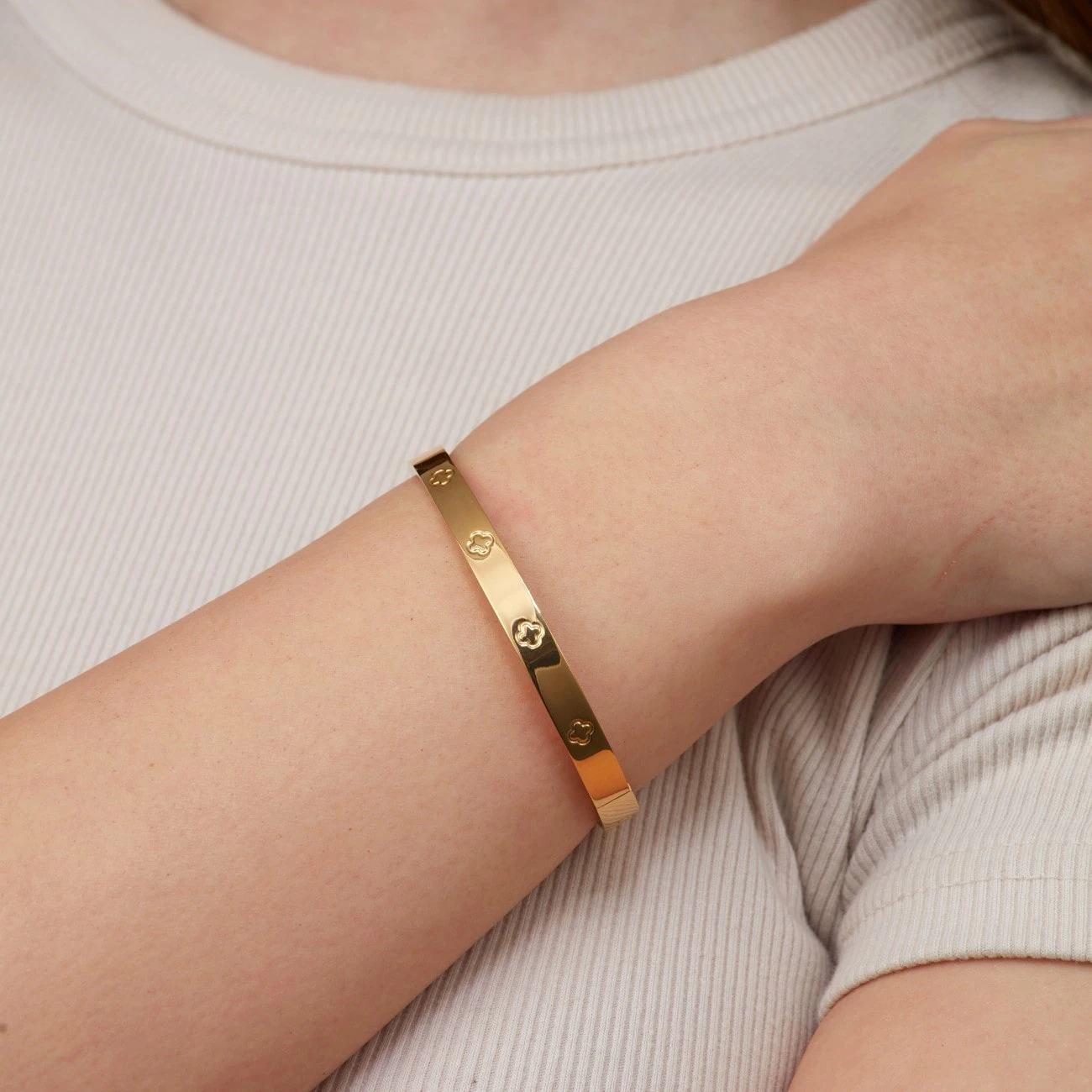 Dieser stilvolle Shine Clover Armreif ist ein Klassiker und und darf in keiner Schmuck-Sammlung fehlen. Die Kleeblatt Details rundum sorgen für einen stilvollen Look.