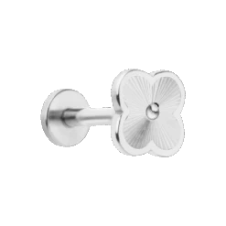 Shine Clover Ohrpiercing mit einer hĂŒbschen Kleeblatt-Front mit strahlenden Riffellungen.