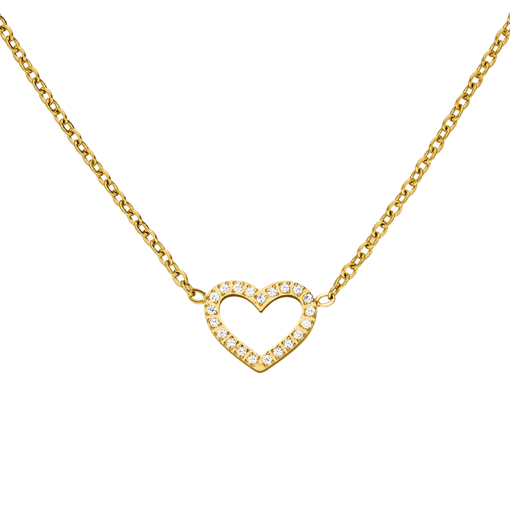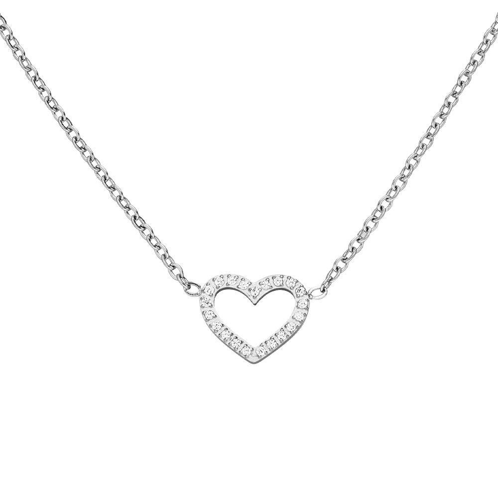 Unsere grazile Shine Heart Halskette wird aus hochwertigem Edelstahl gefertigt und ist wasserfest. Das Herz ist rundum mit feinen Zirkonia-Steinen besetzt. Insgesamt ist diese Kette ein eleganter Begleiter für den Alltag im dezenten Stil.