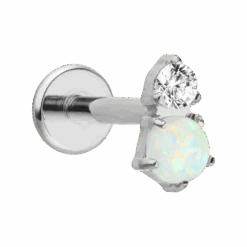 Hochwertiges Titan Piercing mit funkelndem Zirkonia-Stein und einem strahlenden synthetischen Opal.