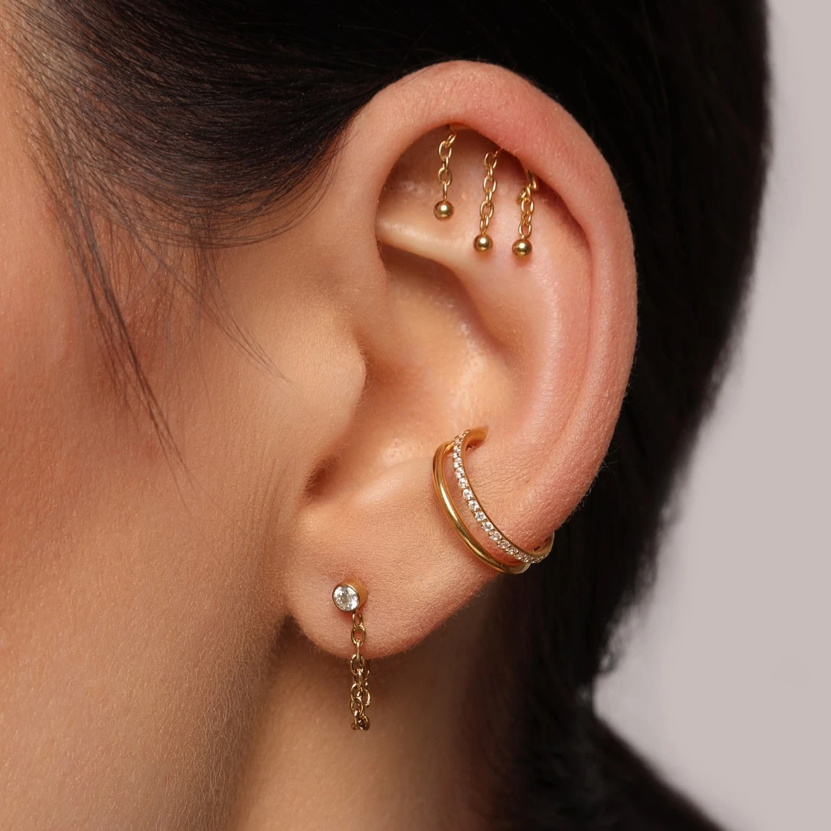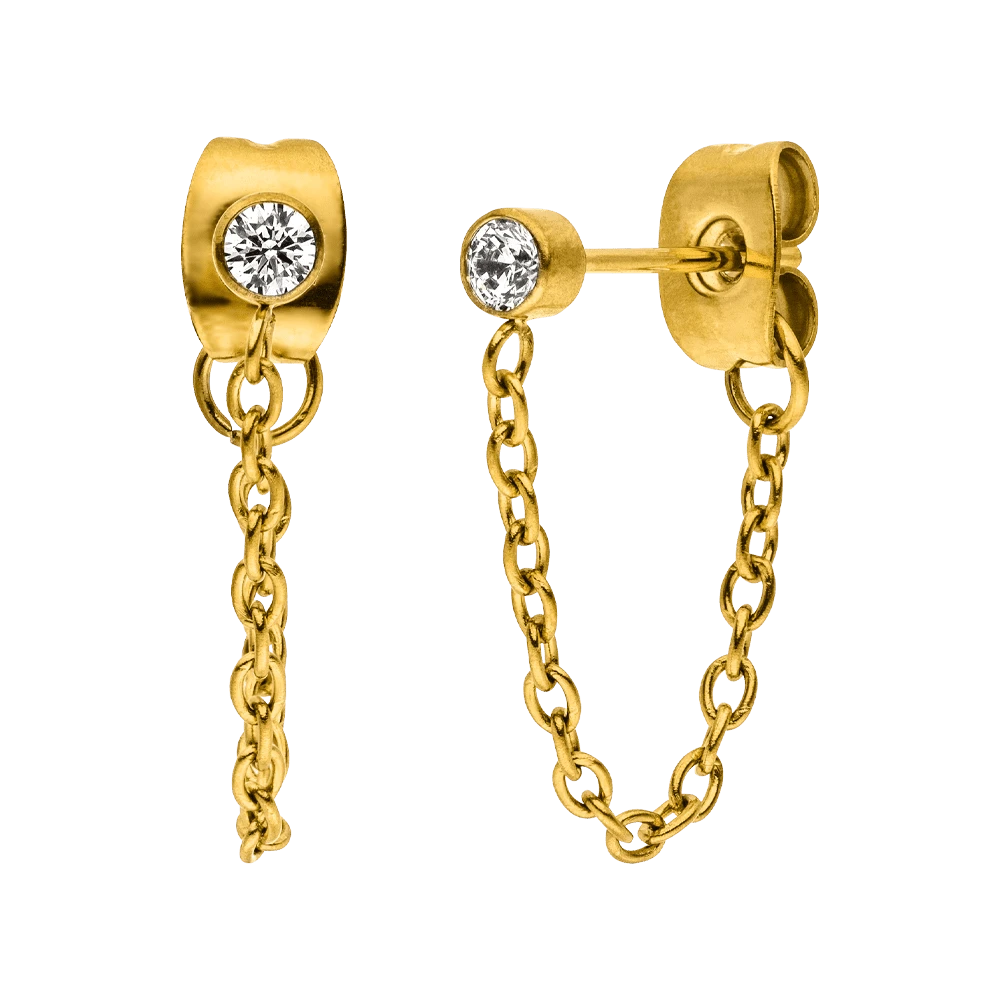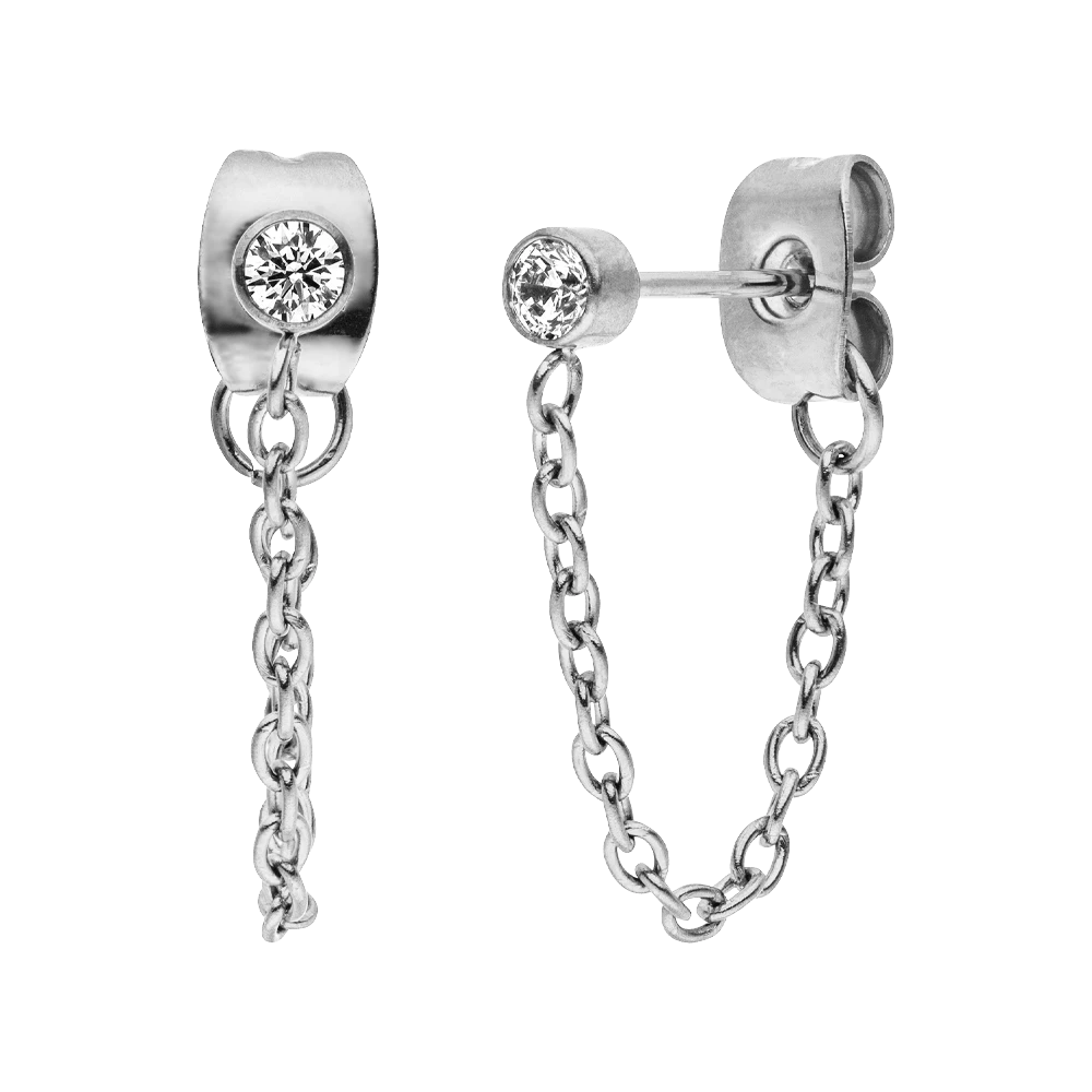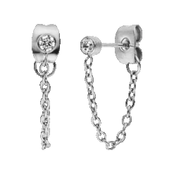 Die Shining Point Ohrstecker stechen durch ein tolles Design heraus. Die funkelnden Zirkonia-Steine funkeln im Licht. Die Front ist durch eine filigrane Kette mit dem Verschluss verbunden und rundet dein Outfit ab.