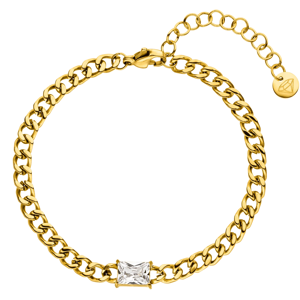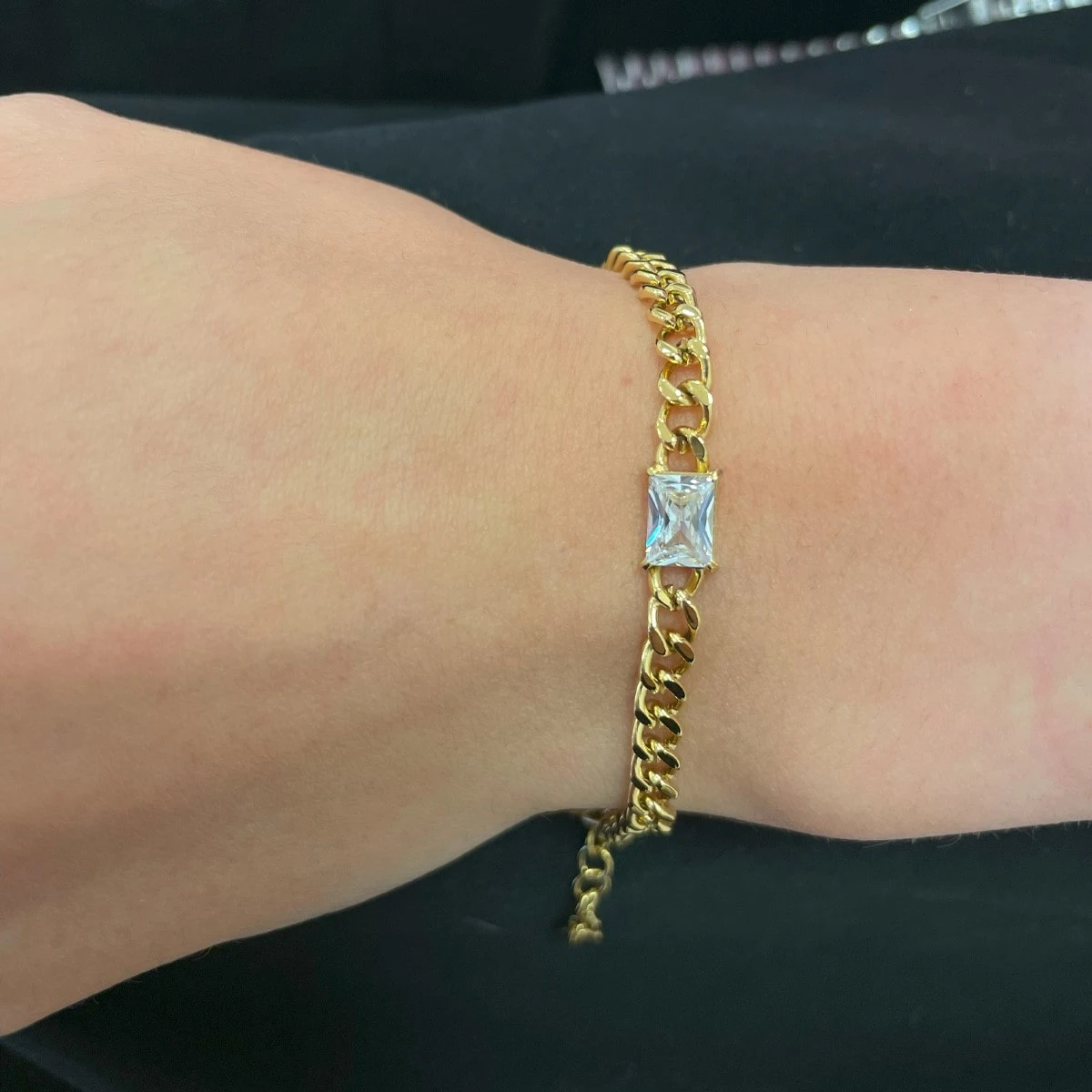 Dezentes Armband aus wasserfestem Chirurgenstahl. Der funkelnde Stein in der Mitte gibt dem Armband einen besonderen Touch.