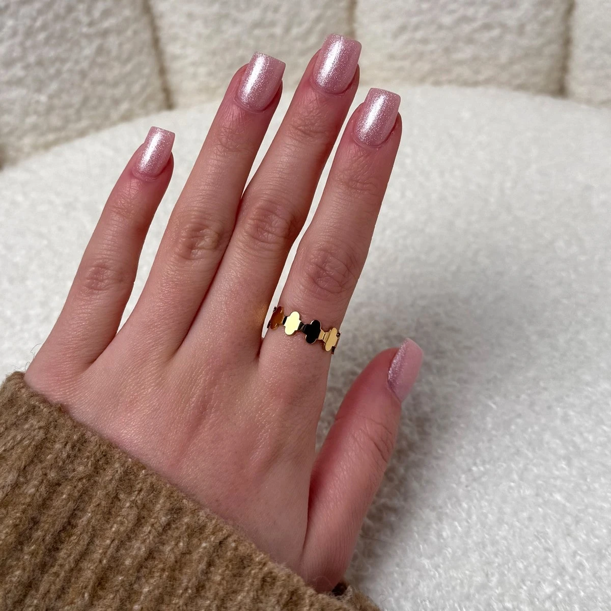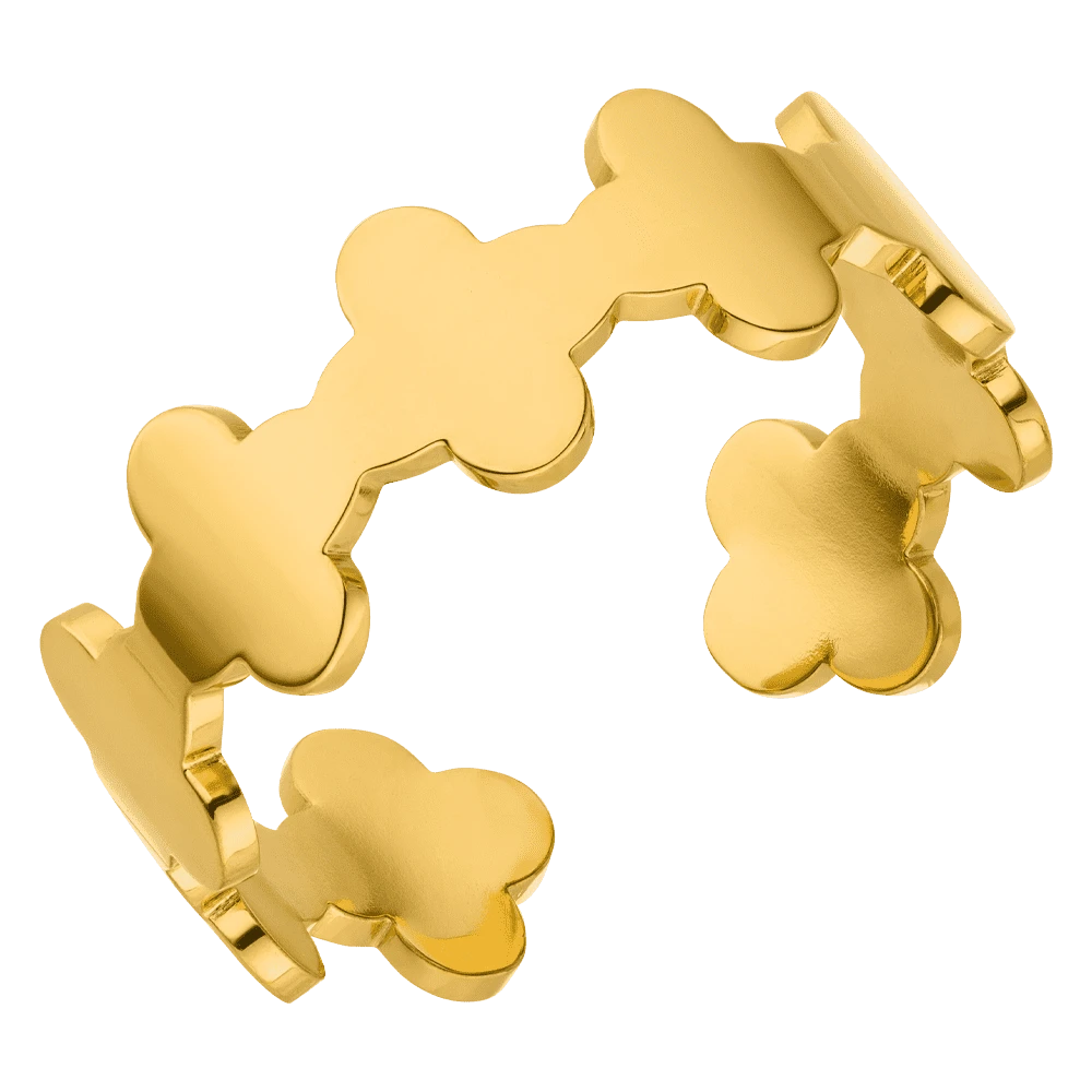 Dieser verstellbare Ring aus stilvollen Kleeblättern vereint modernes Design mit zeitloser Eleganz. Seine anpassbare Größe sorgt für einen perfekten Sitz und hohen Tragekomfort. Die hochwertige Verarbeitung und das glänzende Finish machen ihn zu einem zeitlosen Schmuckstück für jeden Anlass.