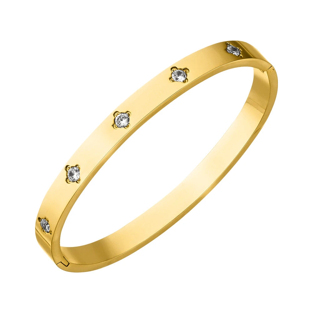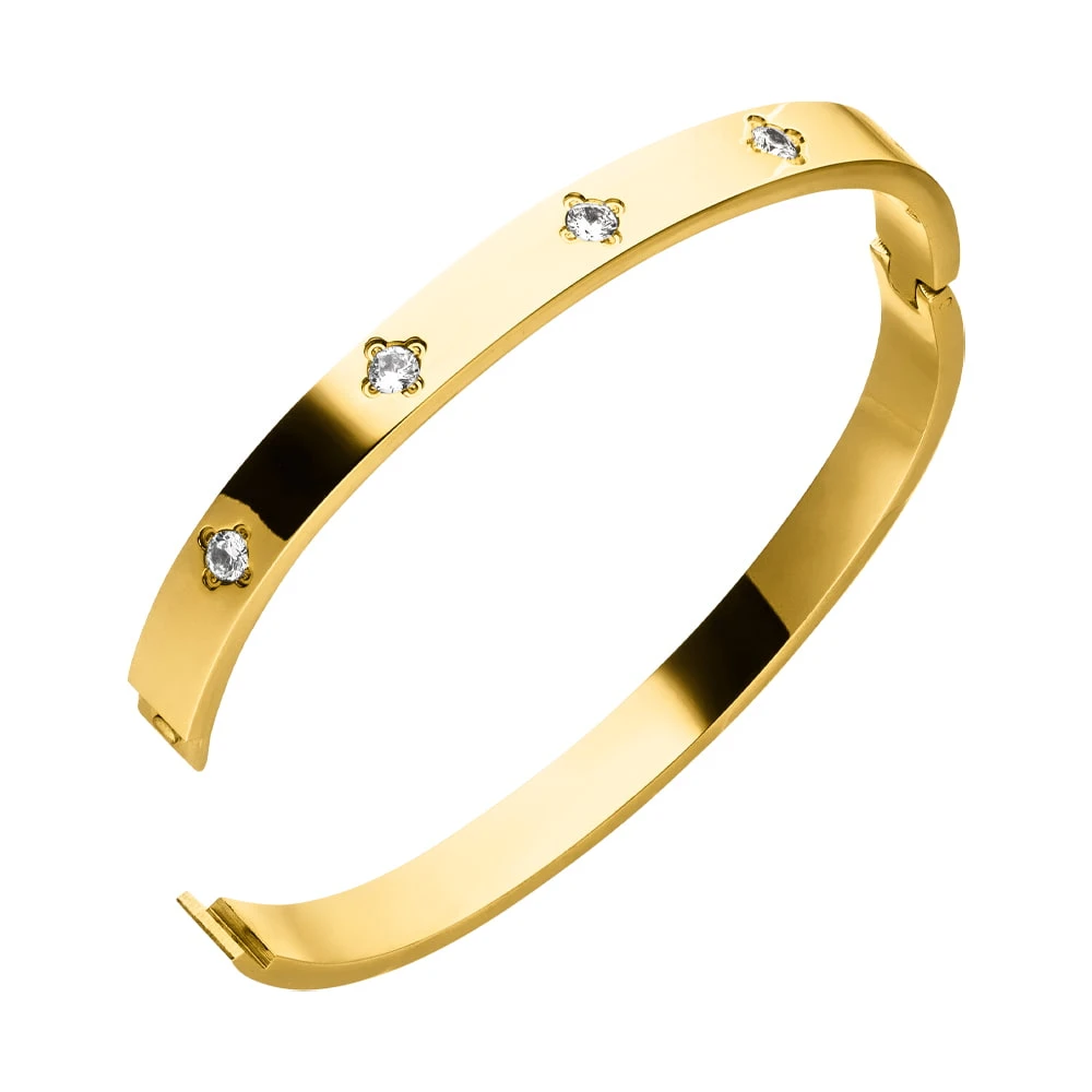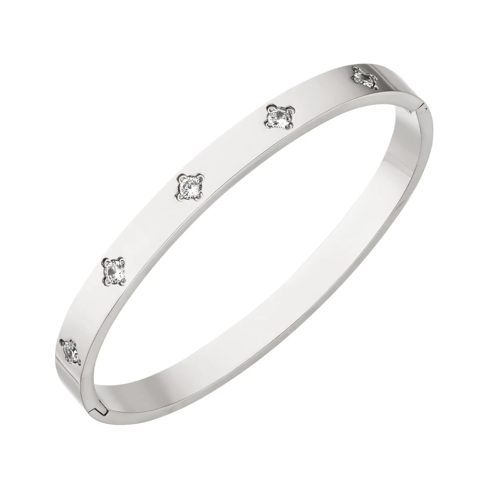 Dieser elegante Armreif ist ein echter Hingucker und darf in keiner Schmuck-Sammlung fehlen. Die funkelnden Steinchen sorgen für einen eindrucksvollen Auftritt.