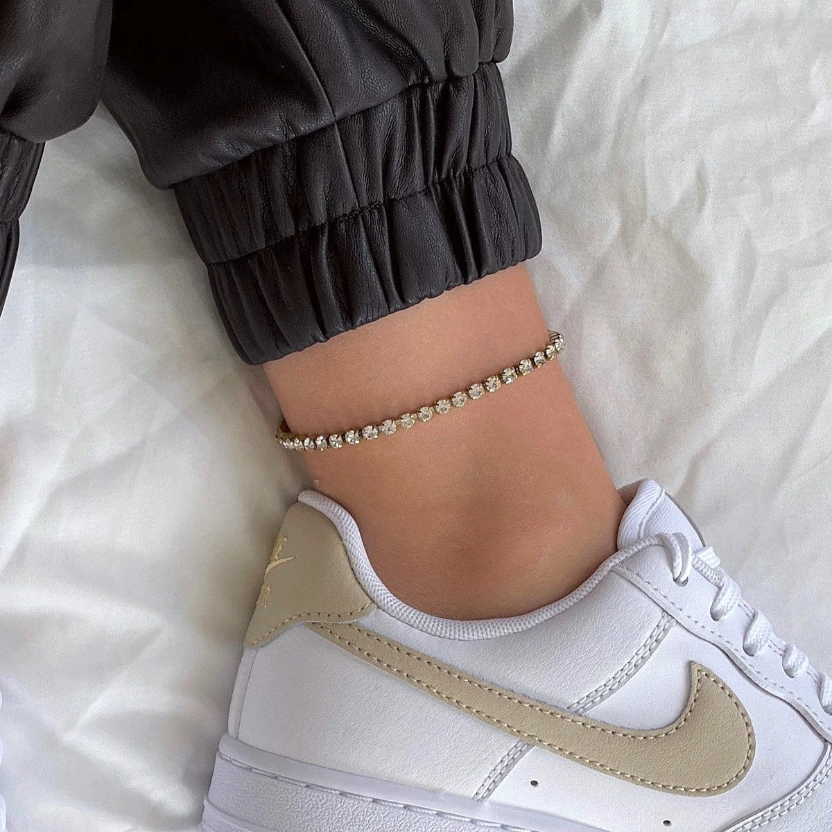 Mit diesem Tennis Fußkettchen gibst Du Deinem Outfit den letzten Schliff. Die hochwertigen Zirkonia-Steine strahlen in der Sonne und verwandeln Dich zum Blickfang.