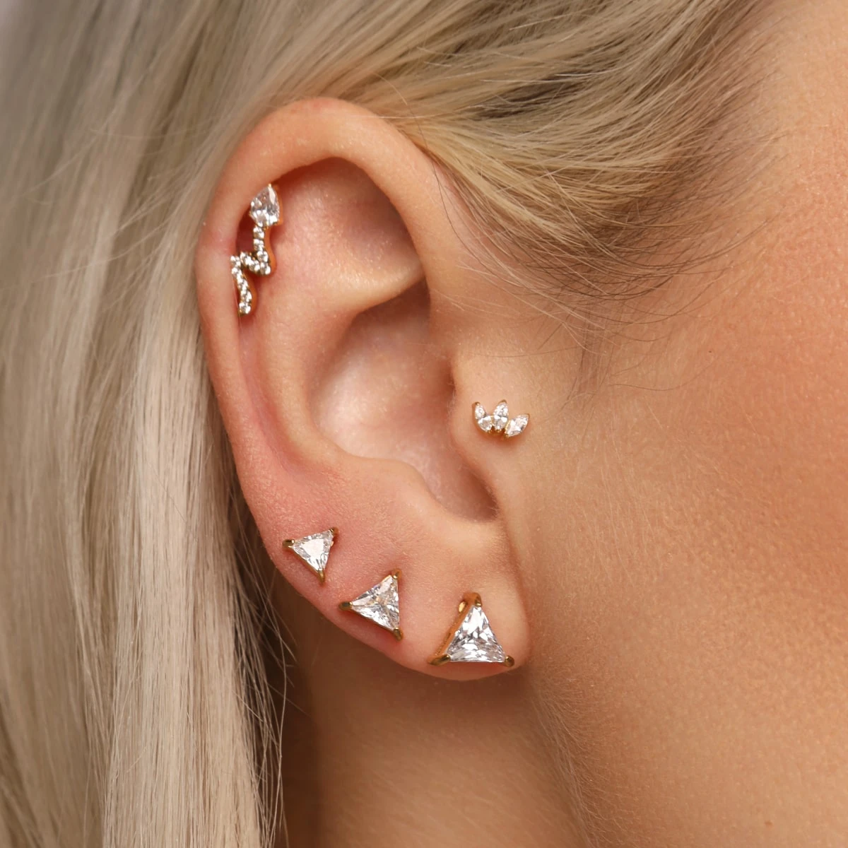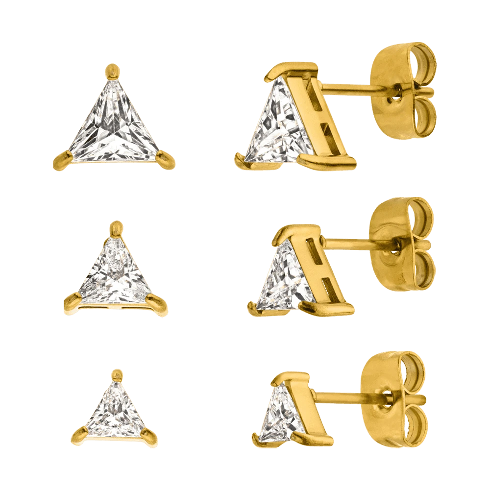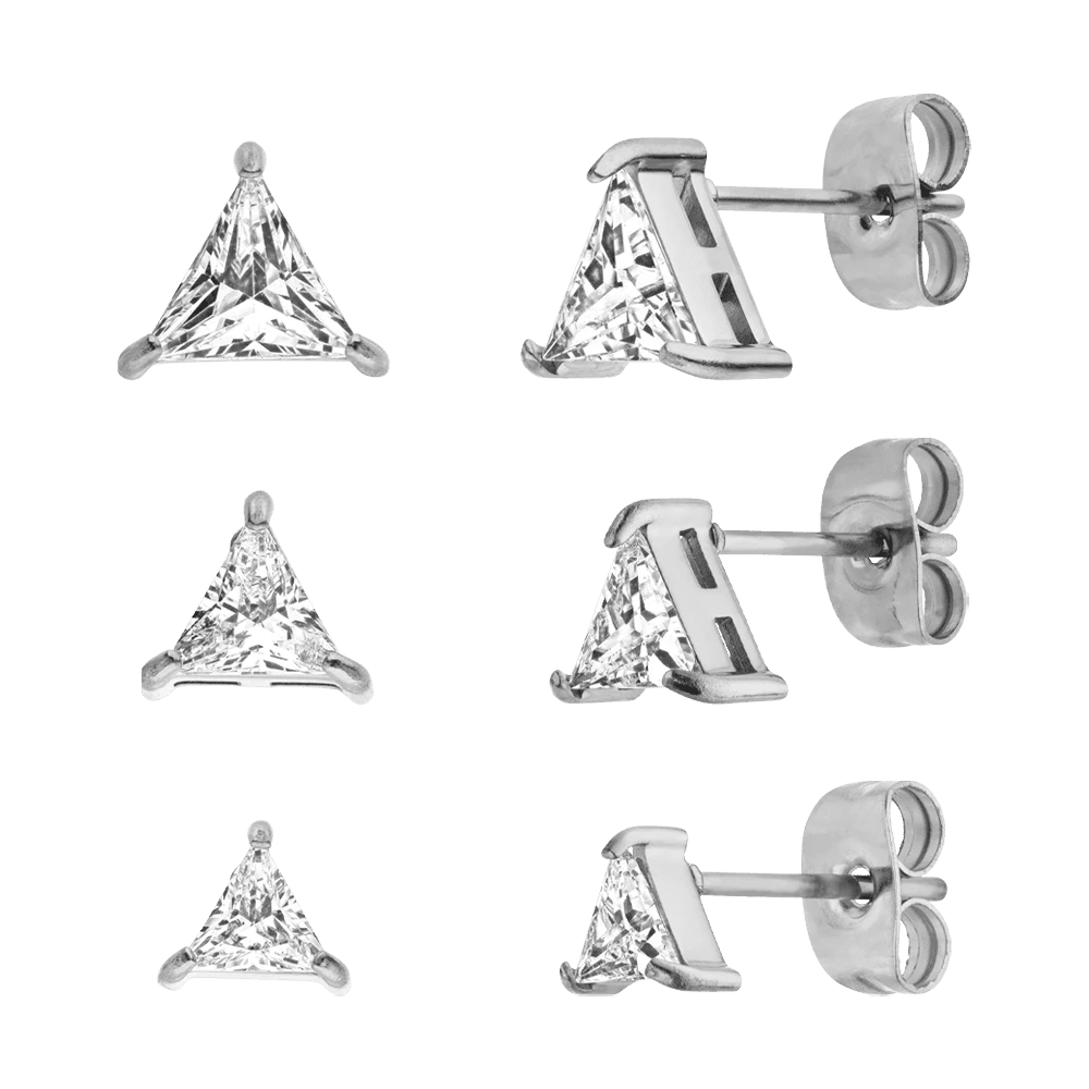 Diese modernen Triangle Ohrstecker aus hochwertigem Chirurgenstahl vereinen minimalistisches Design und funkelnden Glanz. Die dreieckigen Zirkonia-Steine verleihen den Steckerohrringen ein stilvolles und elegantes Finish. Gefertigt aus hautfreundlichem und langlebigem Chirurgenstahl, sind sie wasserfest und perfekt für den täglichen Gebrauch oder besondere Anlässe geeignet.