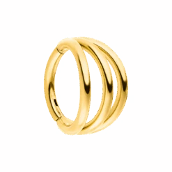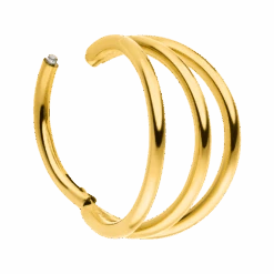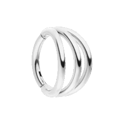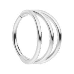 Hochwertiger Dreifach Segmentring mit Clickerverschluss aus medizinischem Titan. Unser dezentes Triple Plain Piercing kann als Conch (12mm) oder als Helix (8mm) getragen werden. Dieses wasserfeste Clicker Piercing ist zudem antiallergisch.