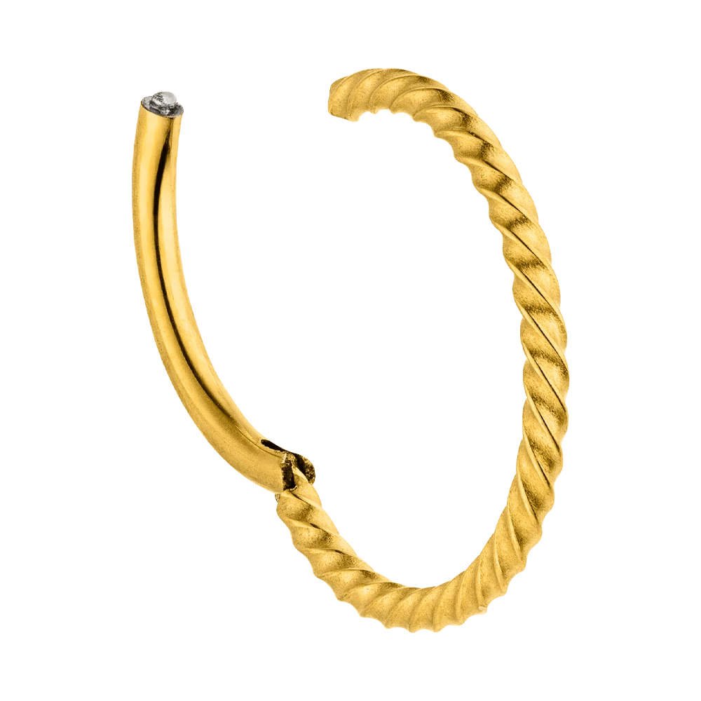 Hochwertiger Segmentring mit Clickerverschluss aus beständigem und hautverträglichem Chirurgenstahl . Ob als Nasen- oder Ohrpiercing, unser Twist Clicker ist der ideale Begleiter im Alltag.