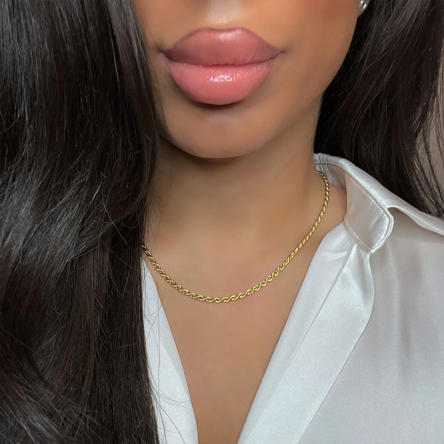 Diese wasserfeste Halskette im Twist-Design lässt sich sowohl im Alltag, als auch zu besonderen Anlässen anziehen. Im Layer-Look mit anderen Halsketten zusammen, kann sie gut kombiniert werden.