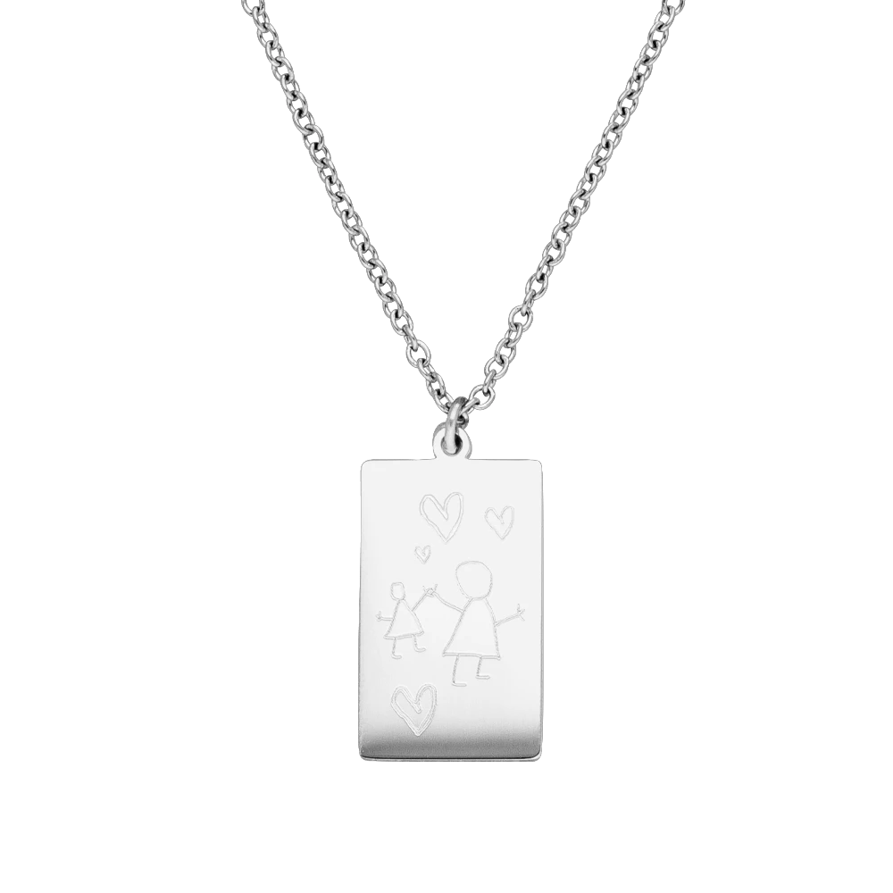 Diese Halskette lässt sich durch individuelle Gravuren (Zeichnungen, Fingerabdruck, Buchstaben, Zahlen oder Symbole) personalisieren. Du kannst sowohl Anfangsbuchstaben von Deinen liebsten Personen eingravieren lassen, als auch Herzen, Sterne und Unendlichkeitszeichen. Gib dafür einfach das entsprechende Symbol ein, z.B. „❤, ∞“.